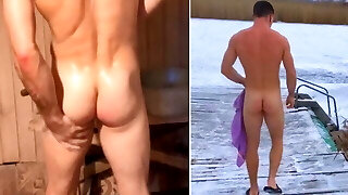 Secretly filming a heterosexual RUSSIAN GUY washing in a sauna